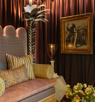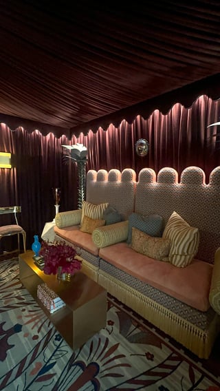 I'll wrap up the indoor spaces with the Moroccan Mirage dining room by Julie Rootes Interiors. It was atmospheric, vibrant, and rich. The ambient lighting was perfect. The brass touches and the antique furniture were a perfect selection to have against the warm-toned draped fabrics. It's a space where candlelit evenings, late night talks, and lots of laughs will undoubtedly occur.