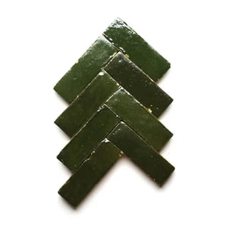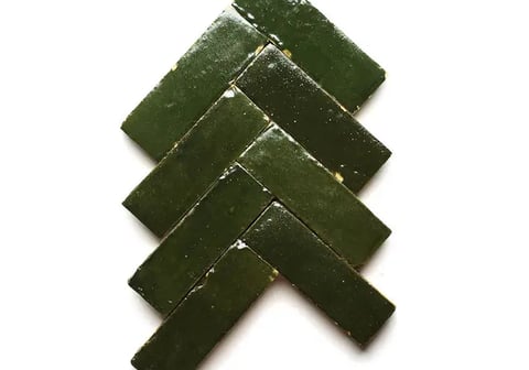 This dark green tile is moody and dark while also adding a wonderful glossy texture to any space. It has pops of a green with yellow undertones but may vary on tile, considering that each tile is handcrafted. This specific tile is perfect for those looking for tile that provides a "perfectly imperfect" feel.