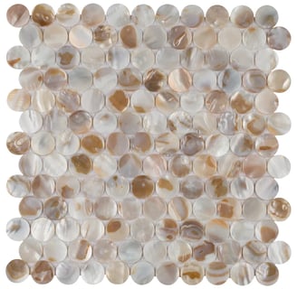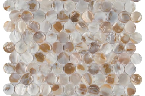 The Merola Tile is a mosaic tile that is very coastal. It captures the natural beauty of a seashell and creates a soft feel with its rounded shape. These penny shaped natural seashell tiles glisten so beautifully, while also creating a radiant space. Its soft beige tones with pop of warm orange and browns work so well with a vast range of other bathroom materials. The Merola tile would make for a great bathroom floor, backsplash and even shower walls - as it is quite versatile due its softer tones. Overall, such a wonderfully executed tile that encourages tranquility, elegance and beauty into a space.